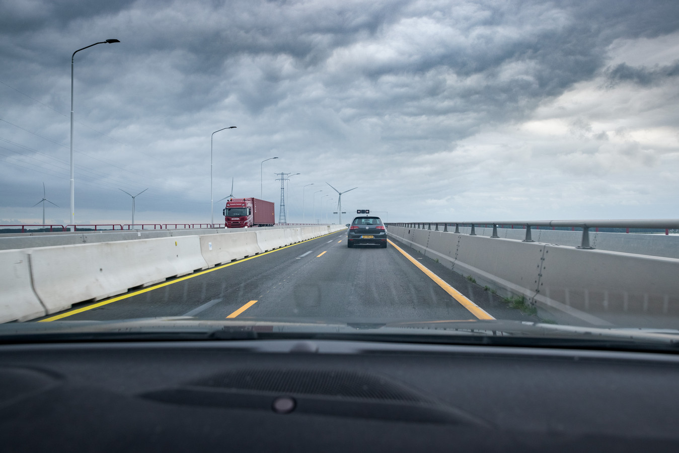 Every day, 66,000 vehicles cross the bridge, including a lot of freight traffic between the ports of rotterdam and antwerp.
